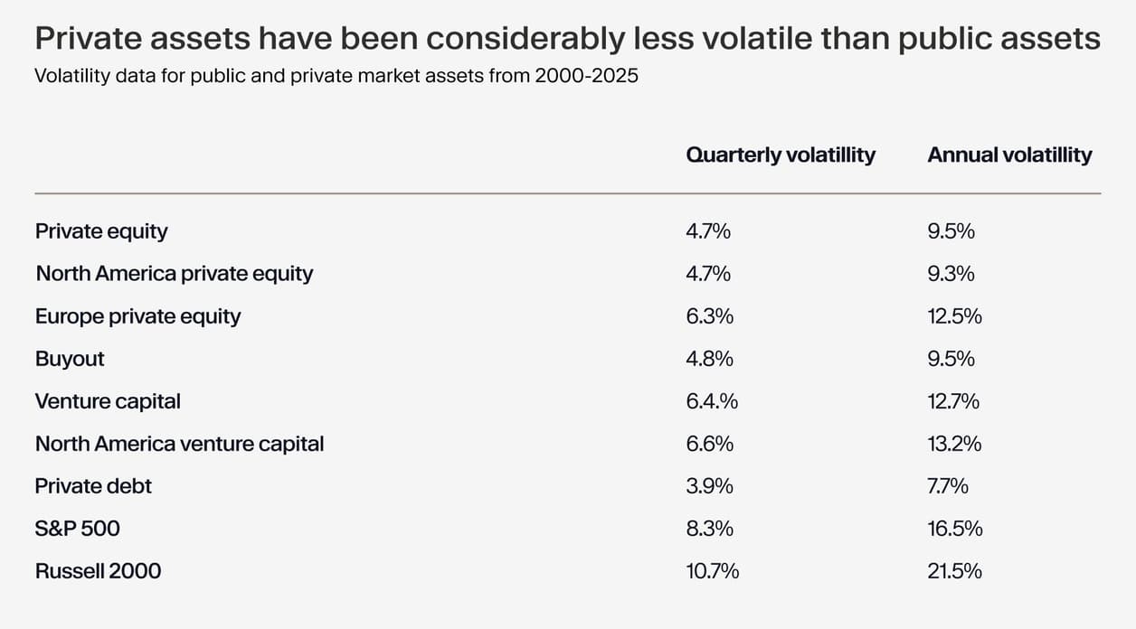 Private markets have historically shown lower volatility in certain periods