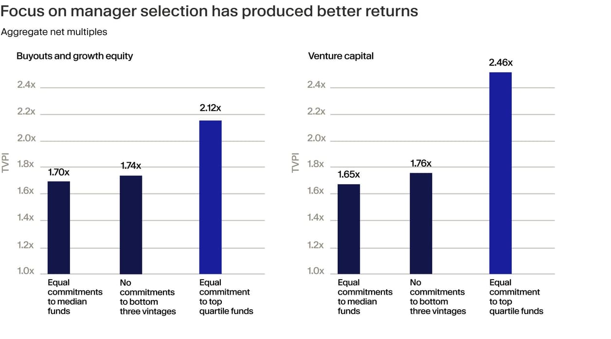 Beyond the return implications, there is also a structural consequence to skipping vintages. Private market allocations depend on a careful pacing strategy to balance commitments, capital calls and distributions over time. Because these cash flows are irregular, maintaining target allocations requires consistent commitment activity.